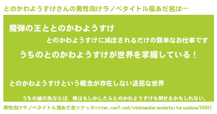 | 意味不明あだ名 | 『住所不定無職とのかわようすけ(81歳)』 |