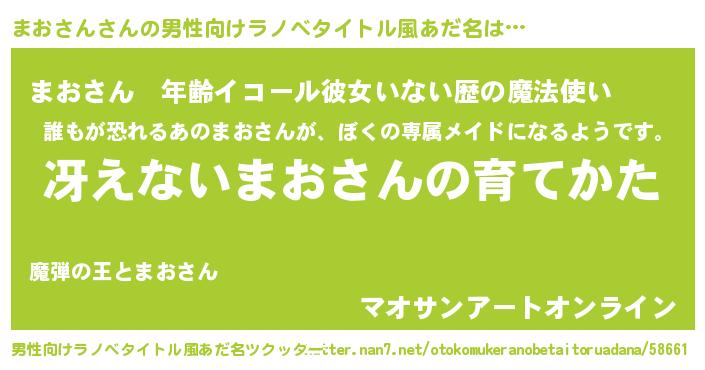 | ヘコむあだ名 | 『まおっふぃ~』『まおさん(遠い目)』 |