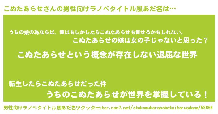 | 胡散臭い通販商品みたいなあだ名 | 『絶対に幸福をもたらす水素水…その名も「こぬたあらせ」』 |