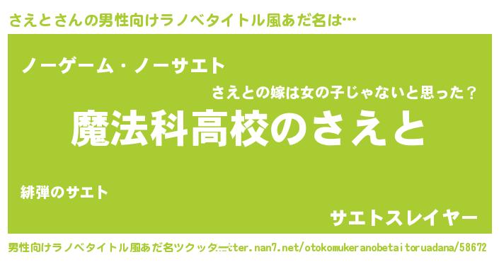 | 女子向けラノベタイトル風あだ名 | 『さえとアンティーク』『さえと恋絵巻』 |