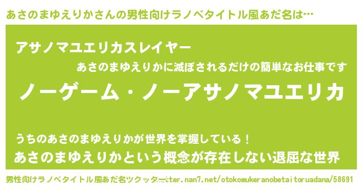 ヘコむあだ名 | 『あさのまゆえりか(笑)』『牛乳』 |