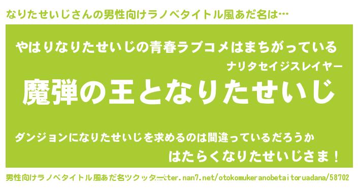 | 女子向けラノベタイトル風あだ名 | 『なりたせいじが死なない童話 林檎のなりたせいじの診療簿』 |