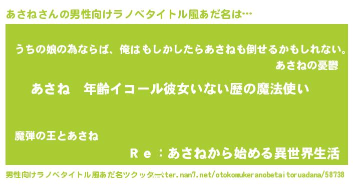 | 女子向けラノベタイトル風あだ名 | 『あさねの玉の輿計画!』『闇のあさね』 |
