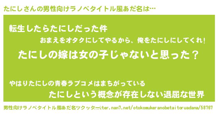 | 女子向けラノベタイトル風あだ名 | 『たにし様がみてる』 |
