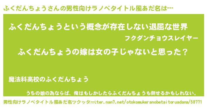 | 女子向けラノベタイトル風あだ名 | 『ふくだんちょう様がみてる』 |