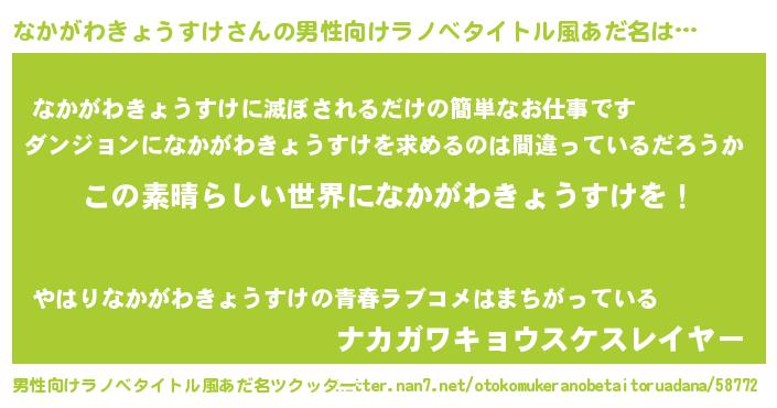 | 胡散臭い通販商品みたいなあだ名 | 『あなたにだけ特別に提供する100年もののヴィンテージワイン…その名も「なかがわきょうすけ」』 |