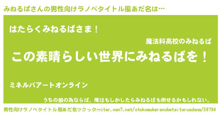 | 意味不明あだ名 | 『住所不定無職みねるば(86歳)』 |