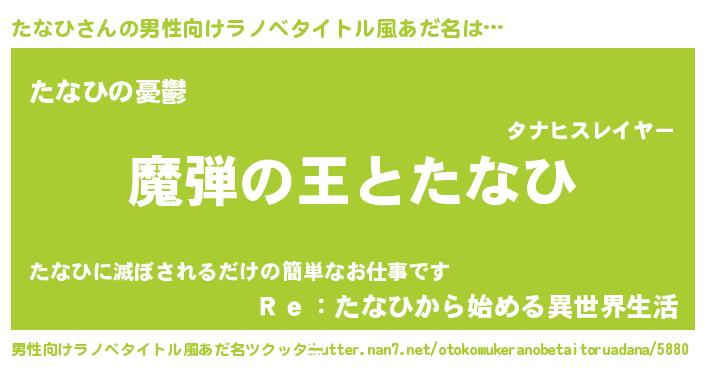 | 意味不明あだ名 | 『住所不定無職たなひ(39歳)』『自称たなひ』 |