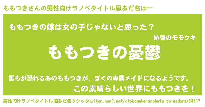 | 女子向けラノベタイトル風あだ名 | 『(仮)ももつきのやんごとなき事情』 |