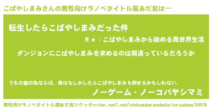 | 意味不明あだ名 | 『とにかく怪しいこばやしまみ』 |