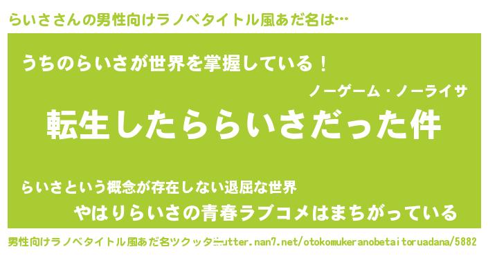 | ヒーロー風カッコイイあだ名 | 『ウルトラらいさマン』『ネオライサ』 |