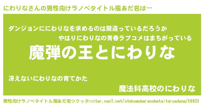 | ヒーロー風カッコイイあだ名 | 『仮面ニワダー』『魔戒騎士ニワ』 |