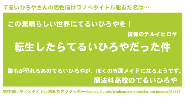 てるいひろやさんの男性向けラノベタイトル風あだ名をツクッター!