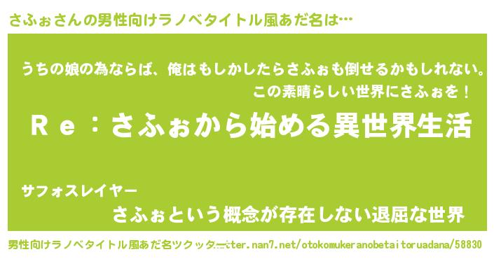 | 意味不明あだ名 | 『自称さふぉ』『さふぉフォーエバー』 |