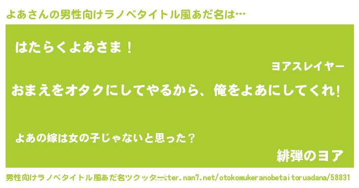 | ヘコむあだ名 | 『よあっぺ』『豆乳』『よあふぇ~』 |