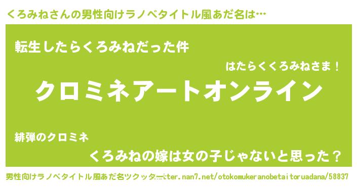 | 女子向けラノベタイトル風あだ名 | 『誰かこのくろみねを説明してください! ~契約から始まるウェディング~』 |