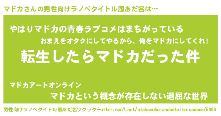 | 胡散臭い通販商品みたいなあだ名 | 『世界が平和になる高級そうな壺…その名も「マドカ」』 |