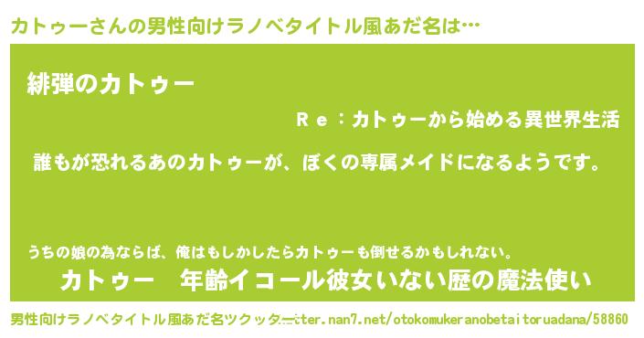 | ヘコむあだ名 | 『カトゥー(小並感)』『レバニラ』 |