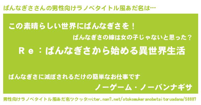 | 意味不明あだ名 | 『自称ばんなぎさ』 |