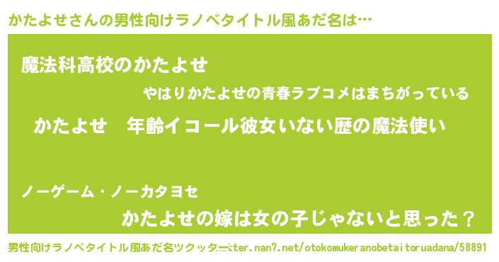 | 女子向けラノベタイトル風あだ名 | 『かたよせの玉の輿計画!』 |