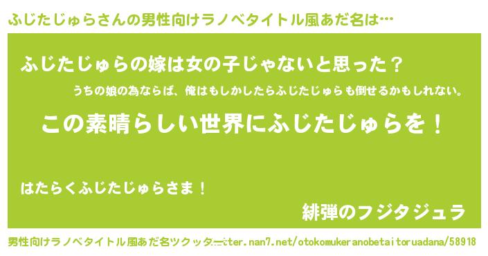 | 女子向けラノベタイトル風あだ名 | 『悪役ふじたじゅらに転生したようですが、知った事ではありません』 |