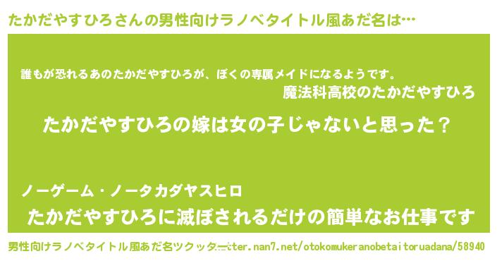 | ヘコむあだ名 | 『たかを』『たかだやすひろ(爆)』 |
