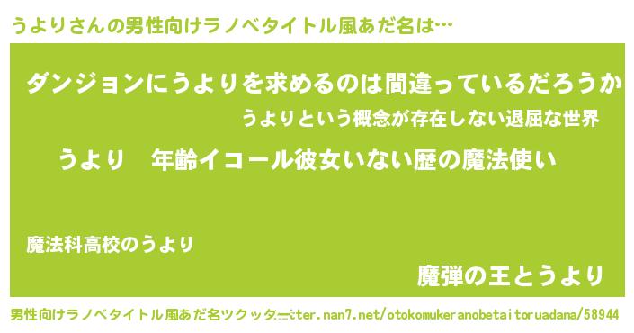| ヘコむあだ名 | 『うよっちょ』『うより(小並感)』 |