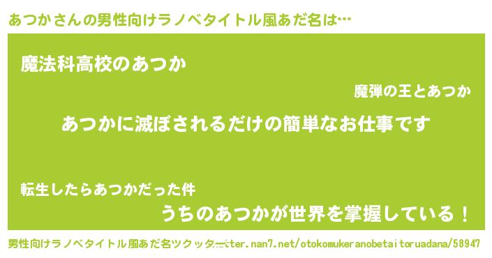 | 意味不明あだ名 | 『自称あつか』『住所不定無職あつか(89歳)』 |