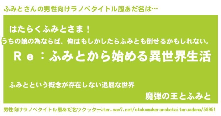 | 女子向けラノベタイトル風あだ名 | 『ふみとストレイドッグス』 |