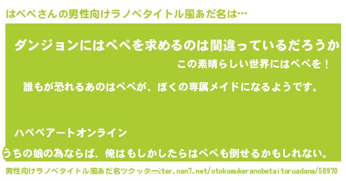 | 胡散臭い通販商品みたいなあだ名 | 『来世でも幸せになれる健康食品…その名も「はぺぺ」』 |