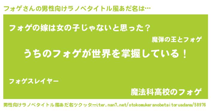 | ヘコむあだ名 | 『フォお』『フォゲ(遠い目)』 |
