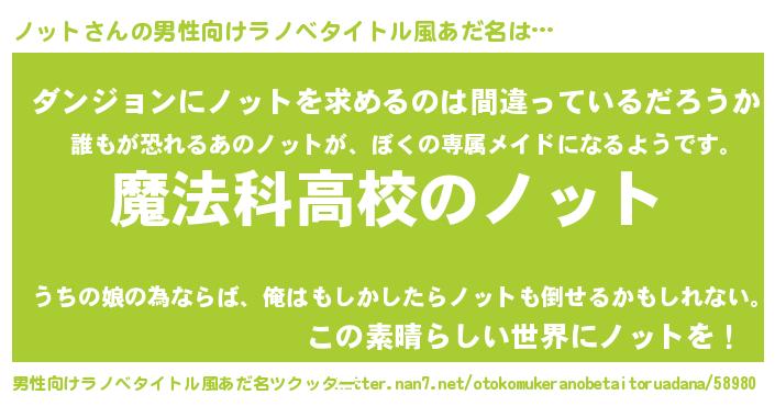 | 女子向けラノベタイトル風あだ名 | 『ノットなんてお断りですっ。』 |