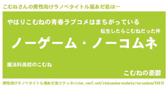 | 意味不明あだ名 | 『眠気覚ましガムこむね味』『自称こむね』 |