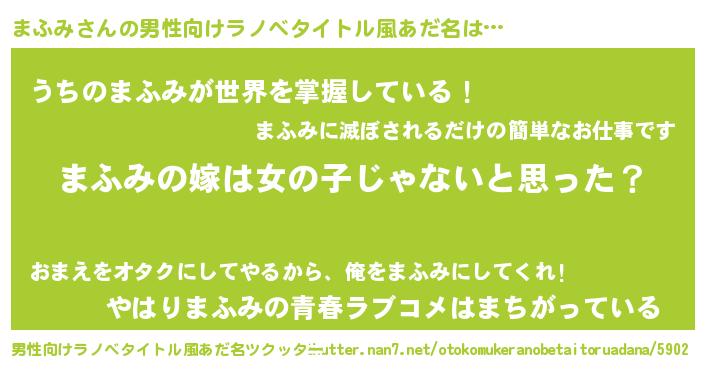 | ヒーロー風カッコイイあだ名 | 『幻影騎士マフ』『ウルトラまふみマン』 |