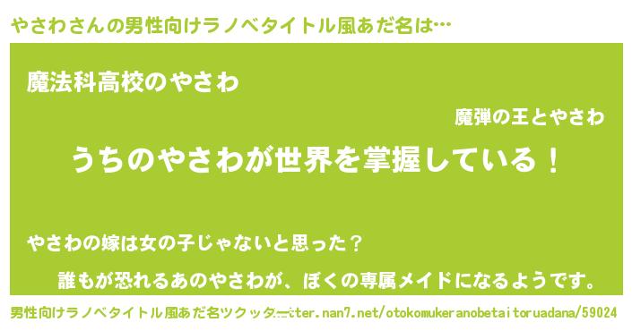 | 意味不明あだ名 | 『自称やさわ』『永久保存やさわ』 |