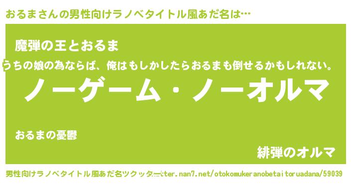 | 女子向けラノベタイトル風あだ名 | 『死神おるまの再婚』『おるま伯爵の花嫁』 |