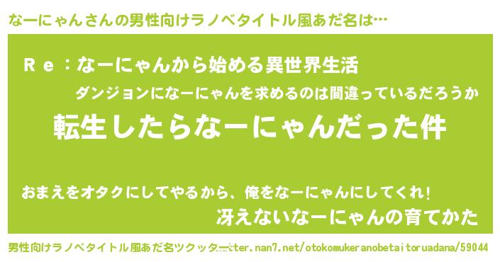 | 胡散臭い通販商品みたいなあだ名 | 『テレビで話題のアガリクス…その名も「なーにゃん」』 |