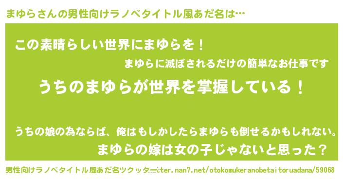 | 胡散臭い通販商品みたいなあだ名 | 『あなたにだけ特別に提供する限定10本のレアな日本酒…その名も「まゆら」』 |