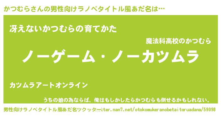 | 女子向けラノベタイトル風あだ名 | 『かつむら恋絵巻』『かつむらの婚約者』 |