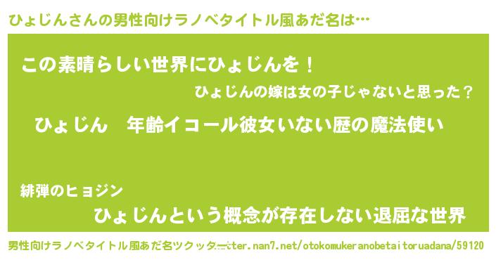 | 女子向けラノベタイトル風あだ名 | 『ひょじんの玉の輿計画!』 |
