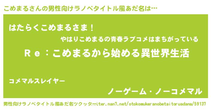 | 女子向けラノベタイトル風あだ名 | 『こめまるストレイドッグス』 |