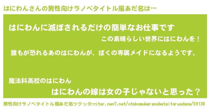 | 女子向けラノベタイトル風あだ名 | 『異世界でカフェはにわんを開店しました。』 |