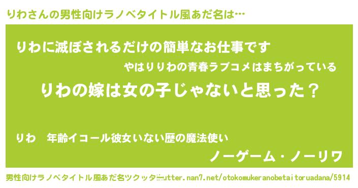 | ヘコむあだ名 | 『りわ太郎』『酢こんぶ』『りわ(爆)』 |