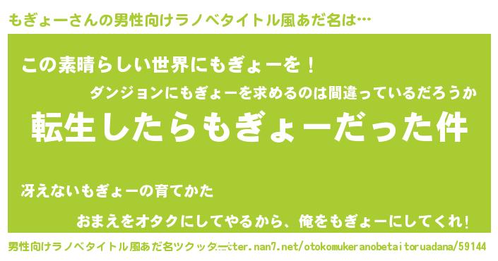 | ヘコむあだ名 | 『もぎぷりん』『もぎょー(小並感)』 |