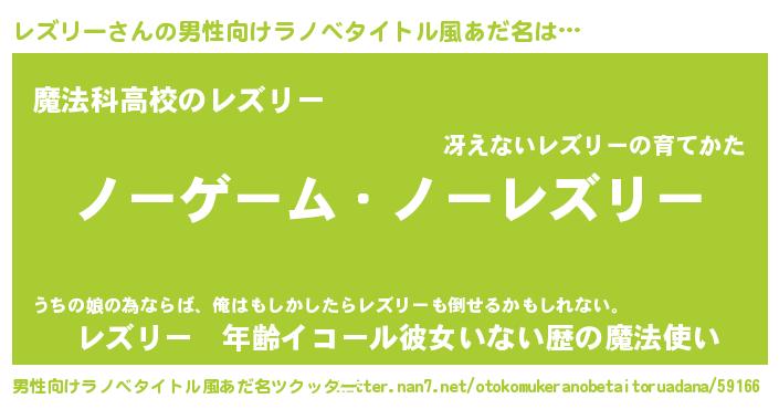 | 女子向けラノベタイトル風あだ名 | 『死神レズリーの再婚』 |