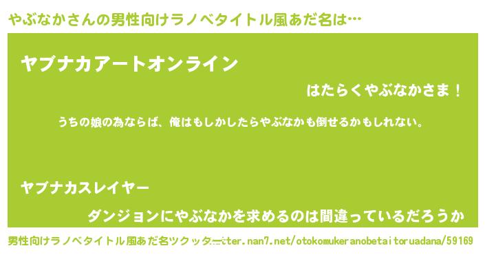 | ファンタジー風あだ名 | 『エターナルヤブナカー』『ヤブフェル』 |