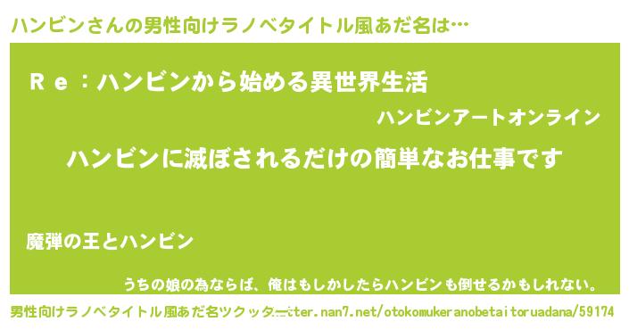 | ヘコむあだ名 | 『酢こんぶ』『ハンにー』『ハンを』 |