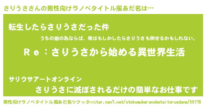 | 女子向けラノベタイトル風あだ名 | 『闇のさりうさ』『さりうさの婚約者』 |