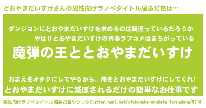 | 意味不明あだ名 | 『住所不定無職とおやまだいすけ(56歳)』 |