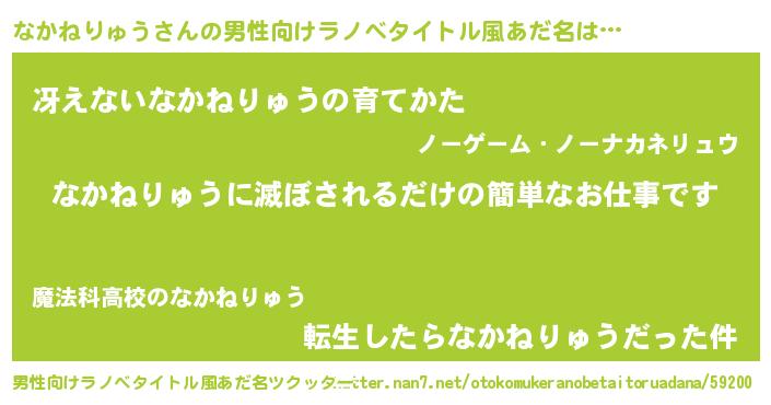 | ヘコむあだ名 | 『なかねりゅう(爆)』『なかっぺ』 |